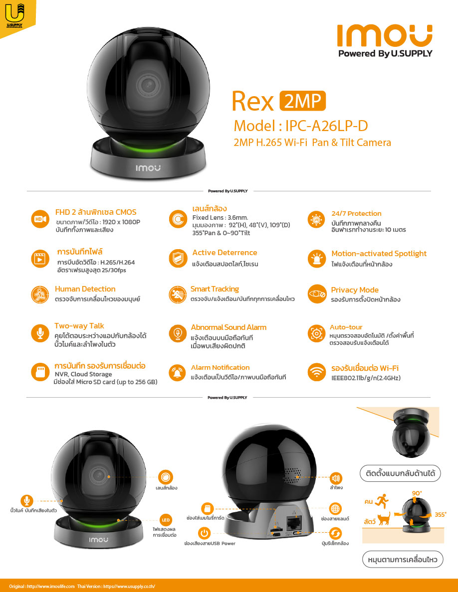 กล้อง IMOU WIFI Rex 2MP รุ่น IPC-A26L เลนส์ 3.6mm Dahua By Usupply